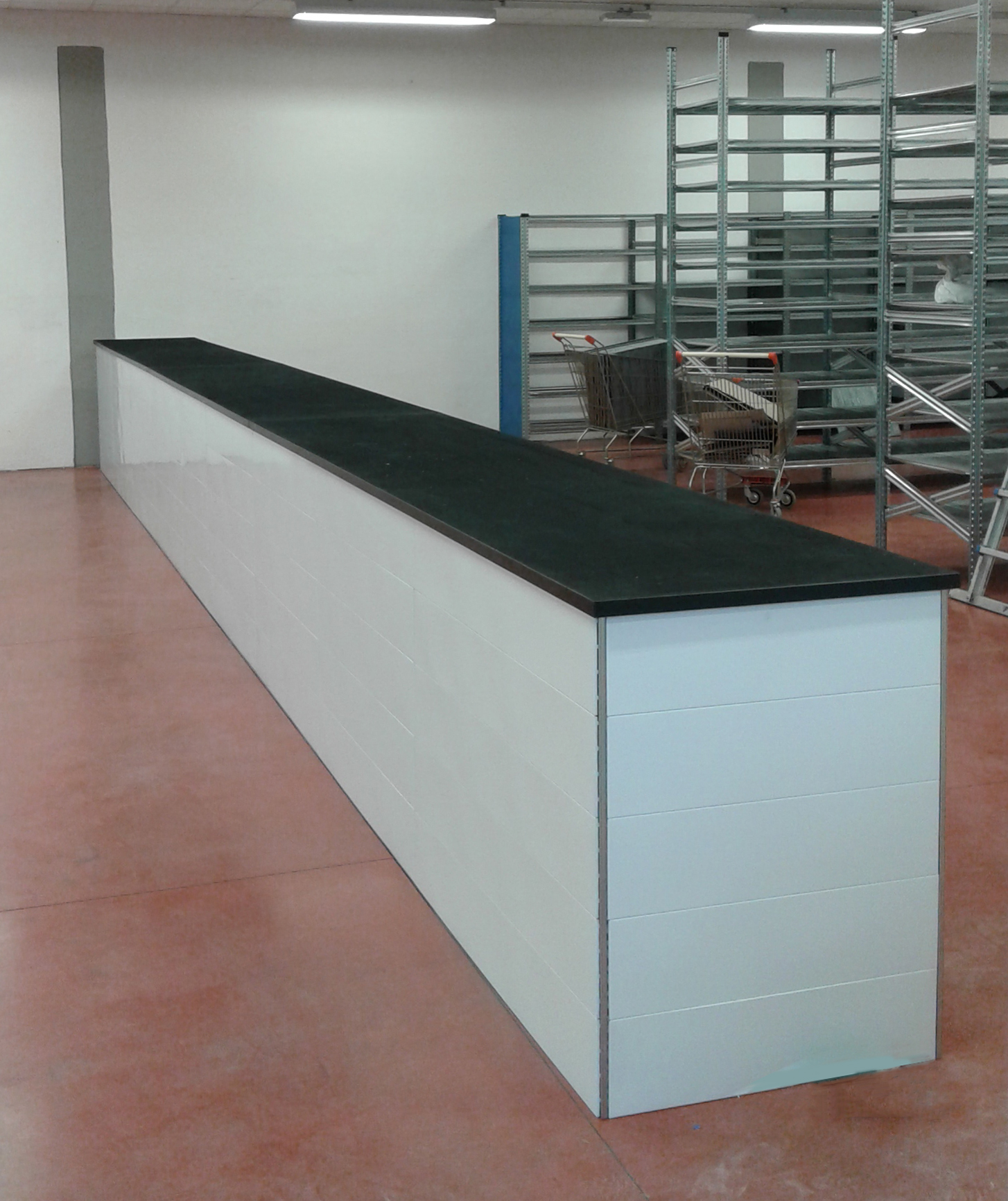 Il sistema è costituito da strutture modulari realizzate con materiali resistenti, progettate per durare nel tempo e sopportare un uso intensivo. Le configurazioni includono piani di lavoro ergonomici, scaffalature integrate, espositori e complementi di arredo, consentendo una completa personalizzazione delle postazioni in base alle esigenze del negozio. La modularità permette modifiche future senza sostituire l’intera struttura, assicurando flessibilità, durata e funzionalità ottimali.