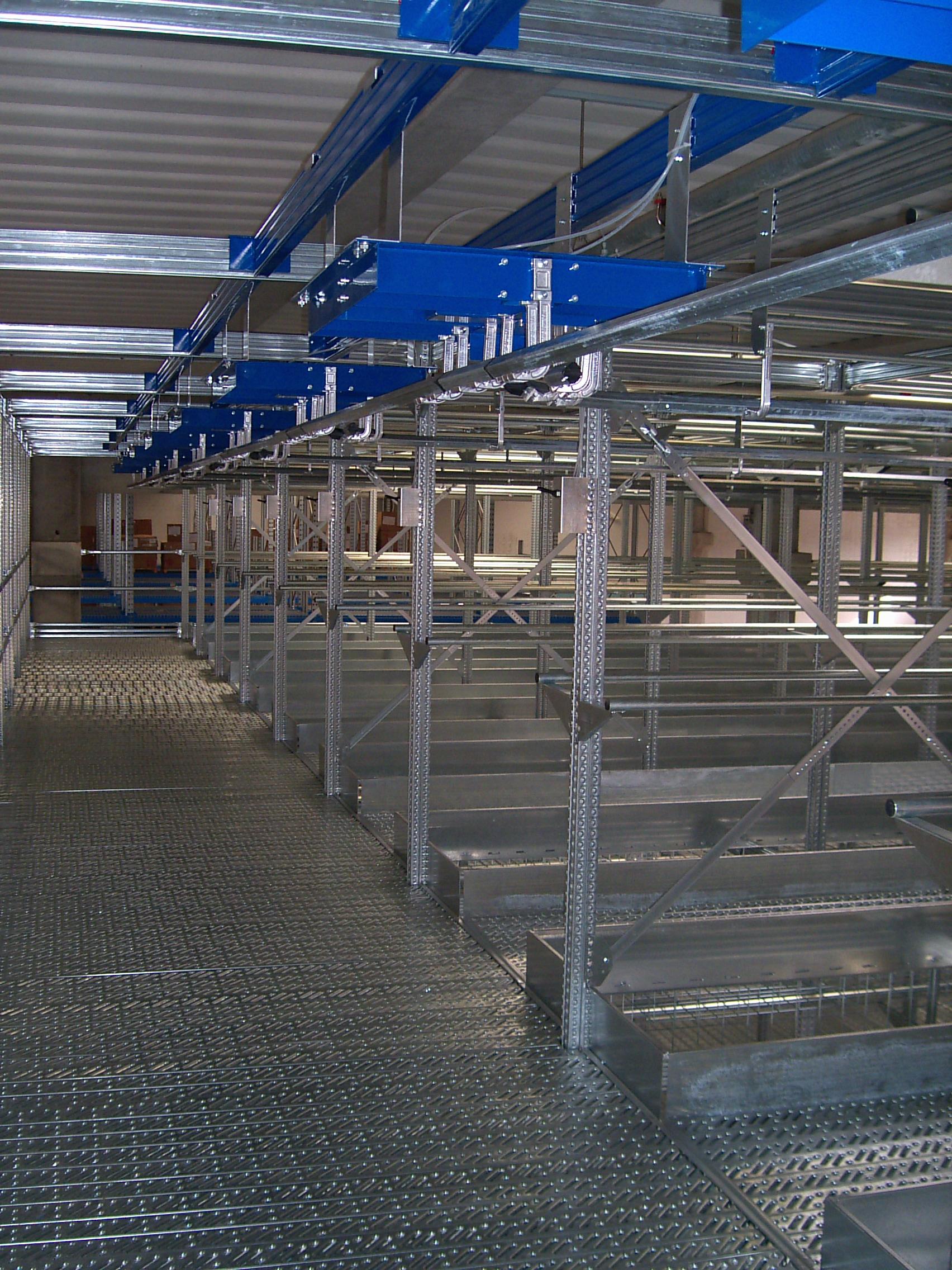 Gestione multilivello: trasporto capi su diversi piani tramite catenarie e risalitori.