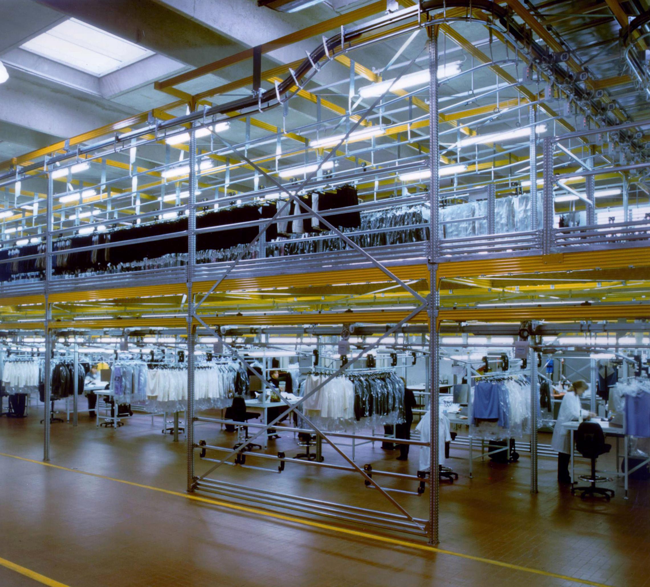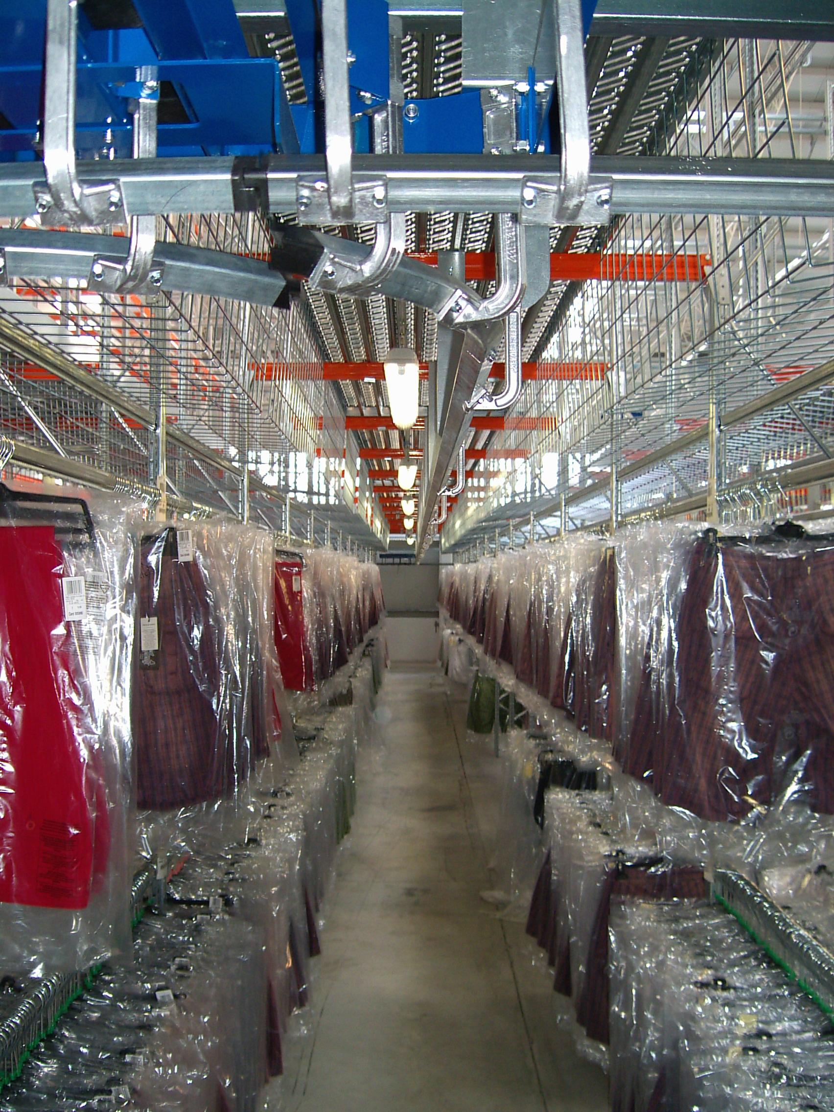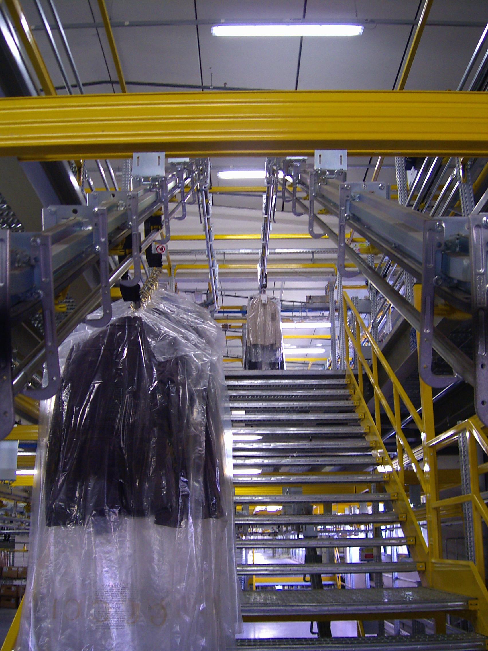 Le soluzioni per movimentazione capi appesi offrono una vasta gamma di opzioni logistiche: gestione dei capi appesi tramite binari e catenarie, sistemi per capi piegati e scatolati con nastri trasportatori, rulliere o sistemi automatici di picking.
