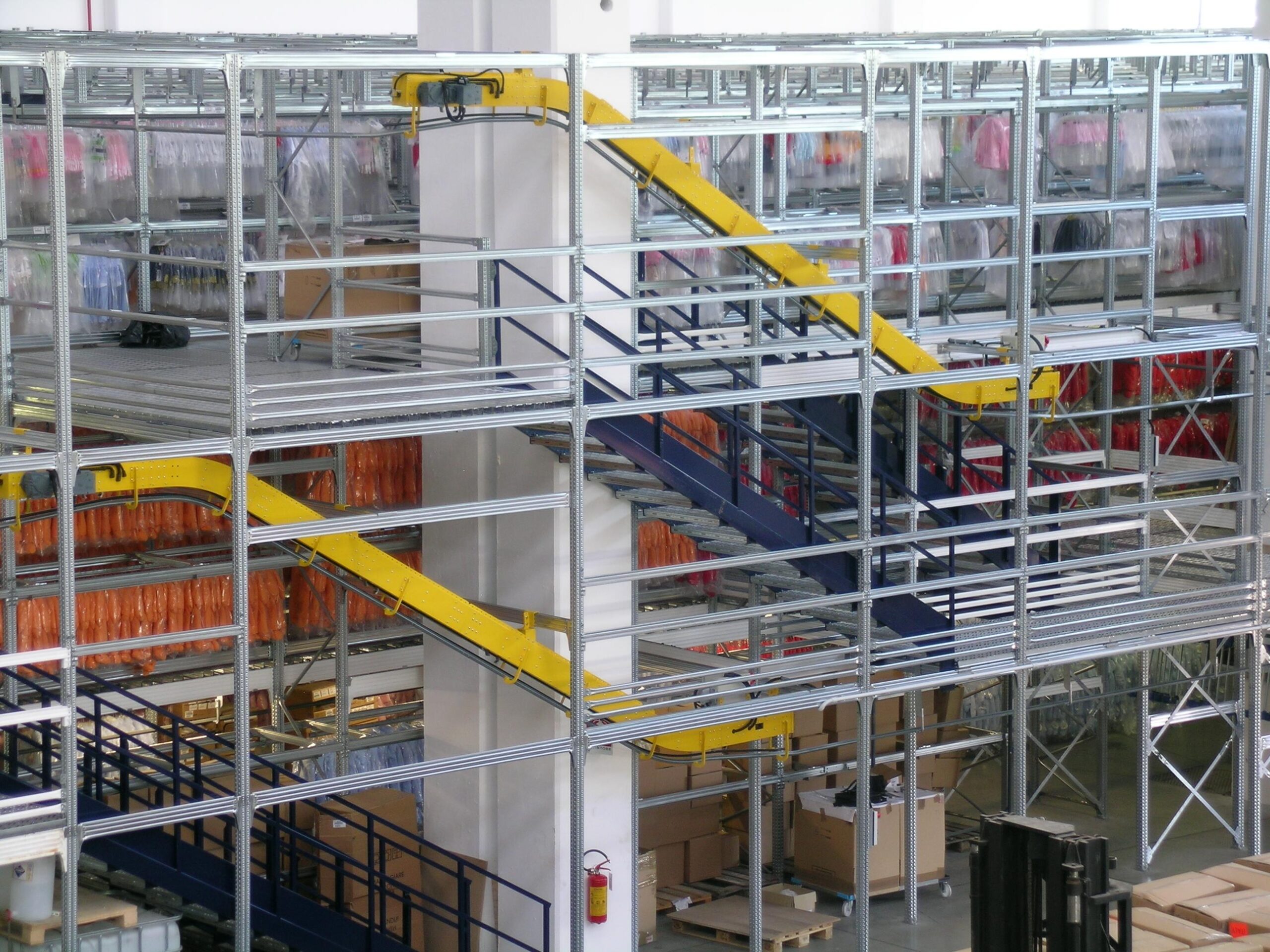 Nel settore fashion è fondamentale inserire rapidamente i prodotti in magazzino dopo il controllo dei capi e garantire velocità nella preparazione ordini. Le procedure di movimentazione sono progettate per essere flessibili, adattabili all’uso manuale, semi-automatico o totalmente automatico, e possono includere la gestione di capi su più livelli tramite catenarie, risalitori e binari modulari.
