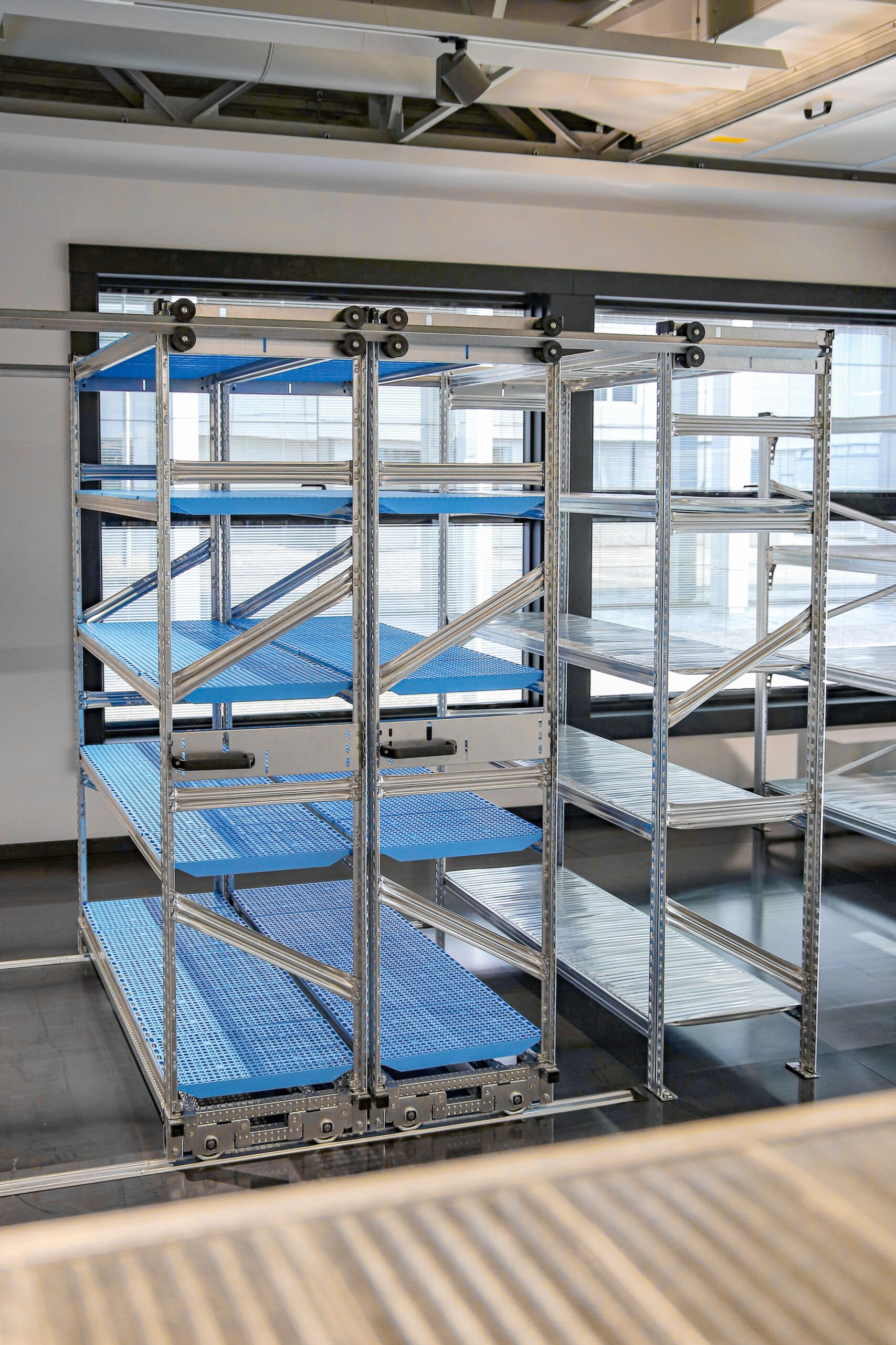 L’apertura dei corridoi avviene tramite un meccanismo intuitivo e sicuro, con moduli configurabili per ottimizzare layout e accessibilità. L’installazione garantisce resistenza, facilità di manutenzione e gestione efficiente dei materiali stoccati, unendo funzionalità e design moderno.