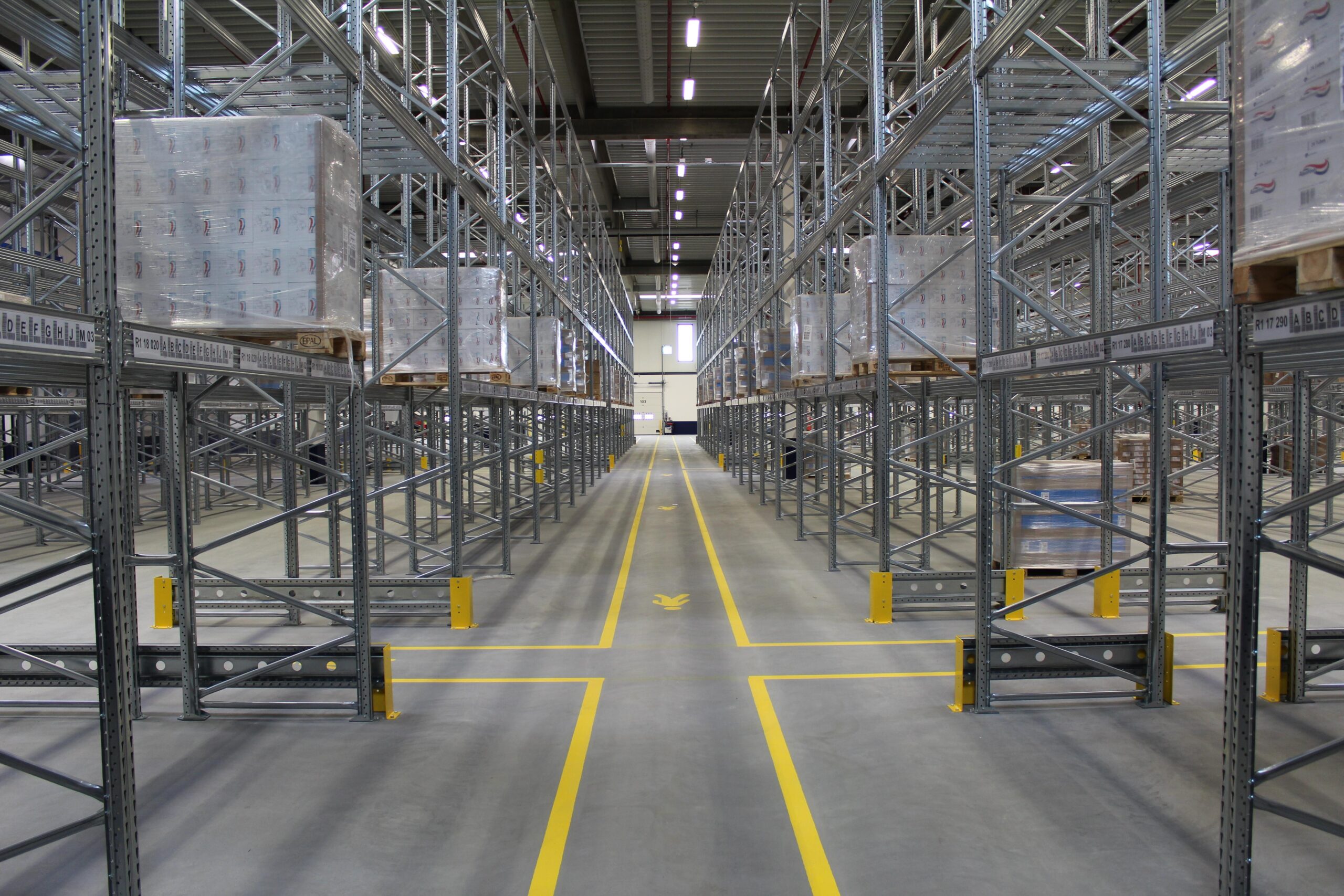 I filari paralleli, intervallati da corridoi di lavoro dimensionati in base ai mezzi di movimentazione, permettono lo stoccaggio ordinato di pallet singoli, ottimizzando i flussi logistici e l’organizzazione dello spazio.